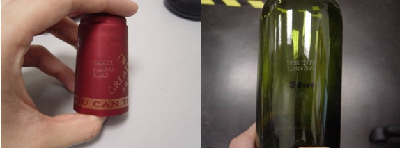 葡萄酒行业由于产品自身的特点,一方面生产速度快,另一方面,产品入箱顺序难以保证,针对该行业的特点,易溯科技开发出一套专门针对葡萄酒行业的防窜货管理解决方案。  可以在酒瓶的瓶身上或者瓶径处利用激光机标刻防窜货产品ID,如下图所示。